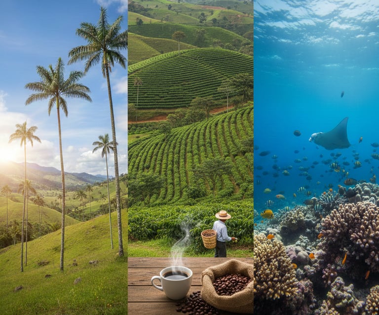 Eje Cafetero (Salento y Valle de Cocora): Es la tierra del mejor café. No te puedes perder las Palmas de Cera (las más altas del mundo) en Cocora y los pueblos coloridos como Filandia.