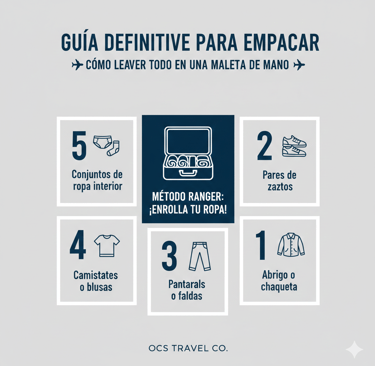 ¿Te ha pasado que intentas cerrar la maleta y parece que estás luchando contra un luchador de sumo? O peor aún, ¿has llegado al mostrador de la aerolínea con el miedo de que te cobren una fortuna por exceso de equipaje? Viajar solo con maleta de mano no es solo una forma de ahorrar dinero, es una filosofía de libertad. En OCS Travel Co queremos que tu única preocupación sea disfrutar del destino. Por eso, hemos recopilado los mejores trucos de viajeros expertos para que metas 10 días de viaje en una cabina de 10 kg.
